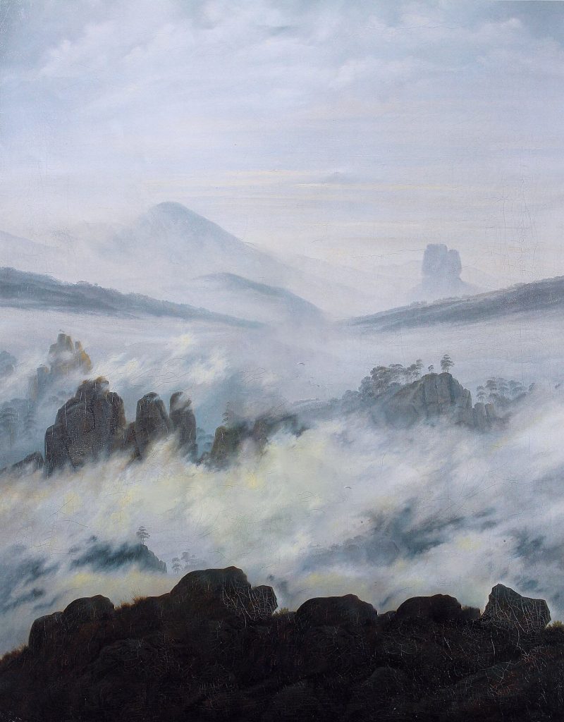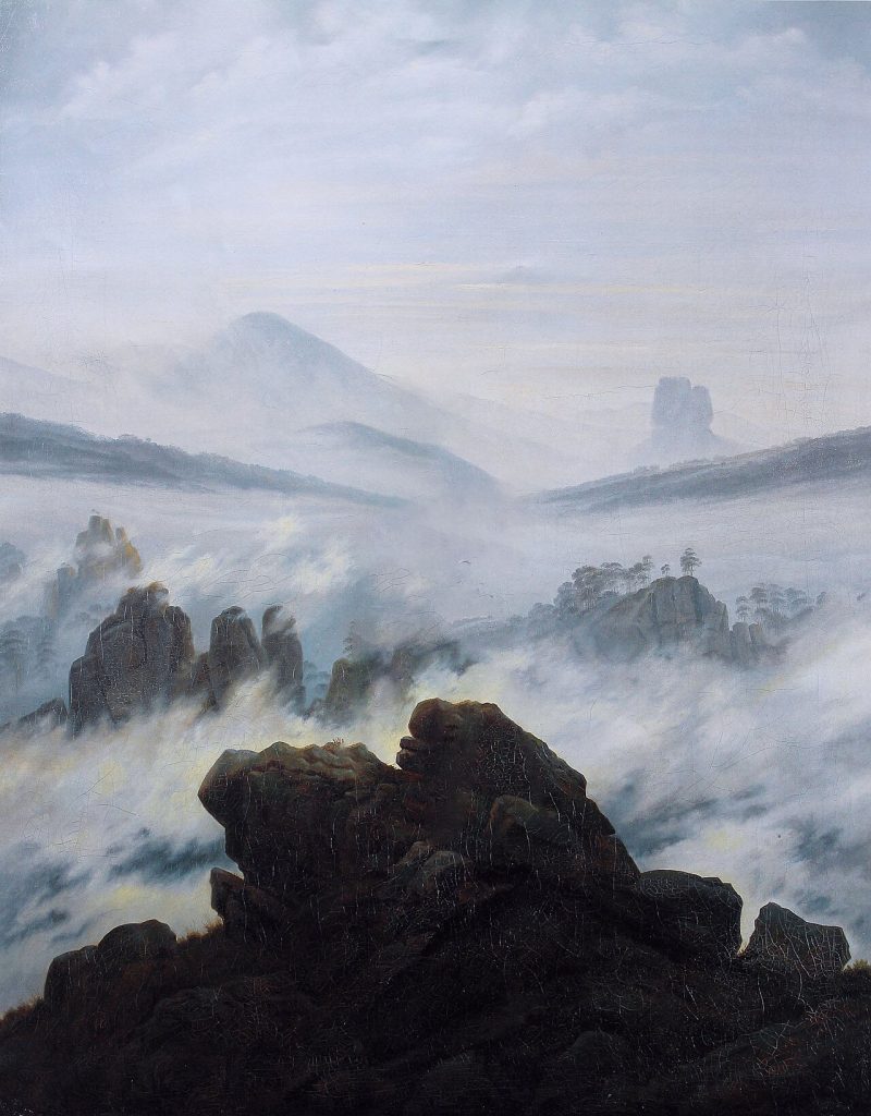 Jeg valgte at tage udgangspunkt i maleriet Vandreren over tågehavet, malet af Caspar David Friedrich i 1818, den periode der i kunsthistorien er kendt som romantismen. Romantismen er bl.a. kendetegnet ved temaer som følelser, individualitet og periodens romantisering af naturen.