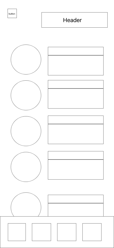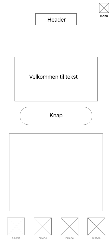 før vi startede på den første prototype lavede vi en hurtig lo-fi wireframe i XD, for at få en generel idé om layoutet på hver side. Vi endte dog med at tilføje flere sider til appen undervejs i projektet.