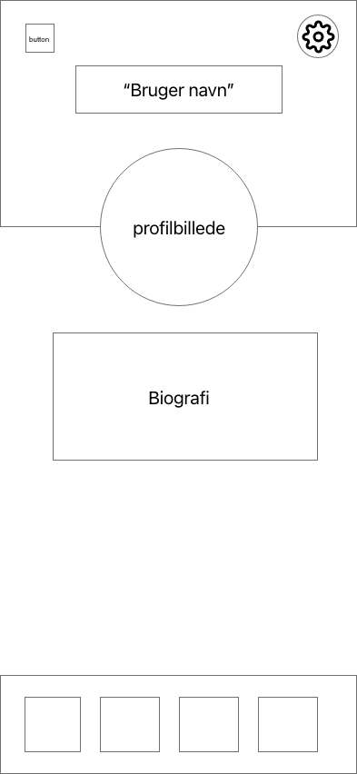 Den første prototype blev meget low-fidelity, i sort og hvid. Vi havde dog sat nogle ikoner ind i det der skulle forestille menu-baren på appen, så vi på den måde kunne teste om ikonerne gav mening for brugeren. Derudover tilføjede vi en “indstillinger”- side. Fordi det er en lo-fi prototype, valgte vi til den første brugertest, at vi ville teste appens interaktion og funktion. Vi besluttede at køre en think aloud test, specifikt en concurrent probing test, så vi kunne teste specifikke funktioner på appen.