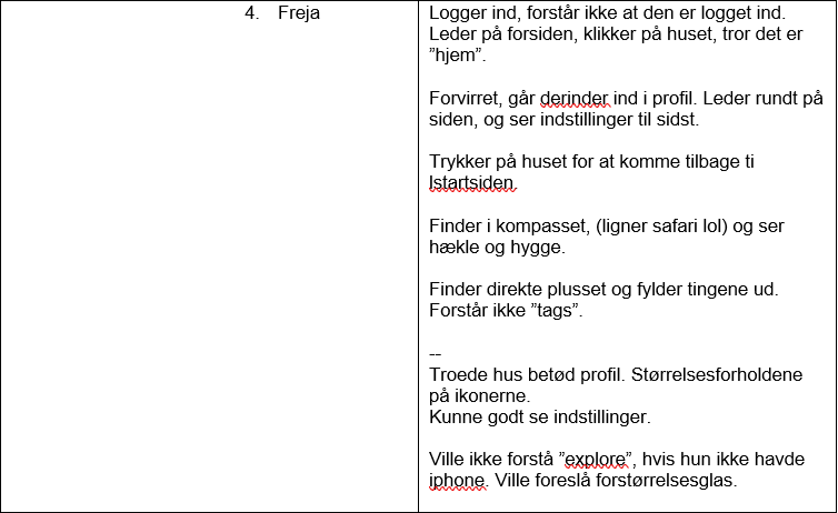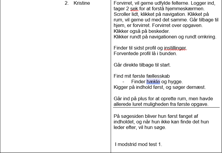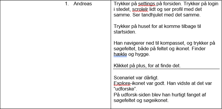 Vi nåede at teste på i alt 4 personer, hvoraf vi fik taget disse noter i mens: