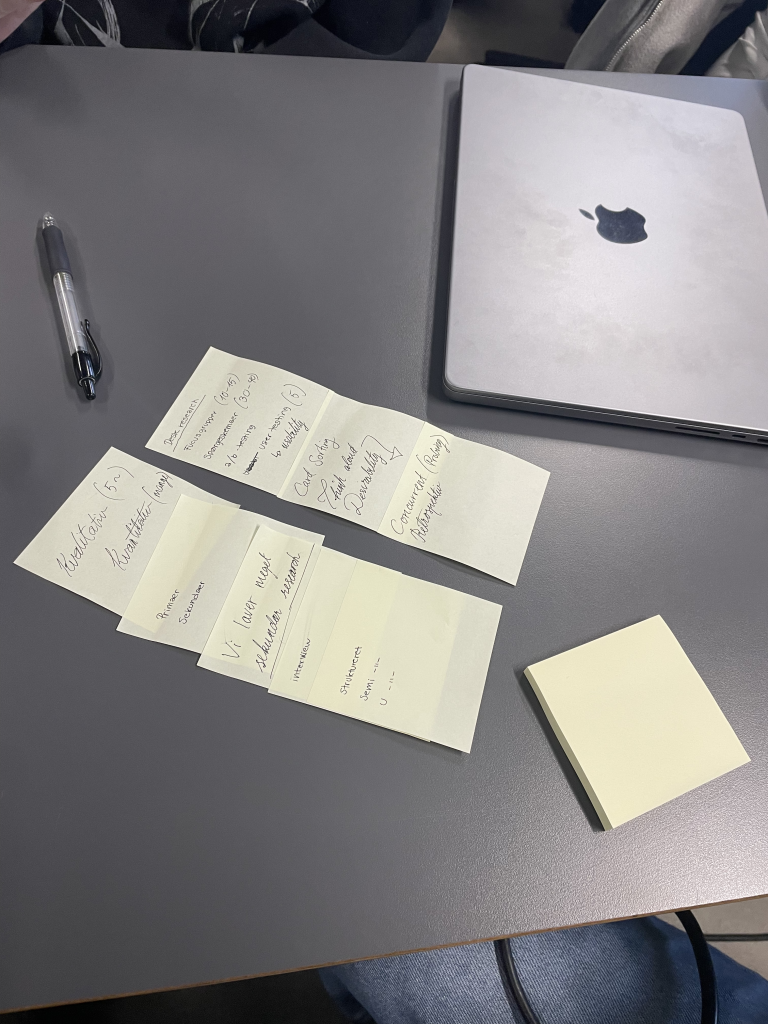 I dag lærte vi om affinity diagramming og skulle senere også bruge det i praksis, med det data som vi havde samlet fra de interviews vi havde lavet dagen før.