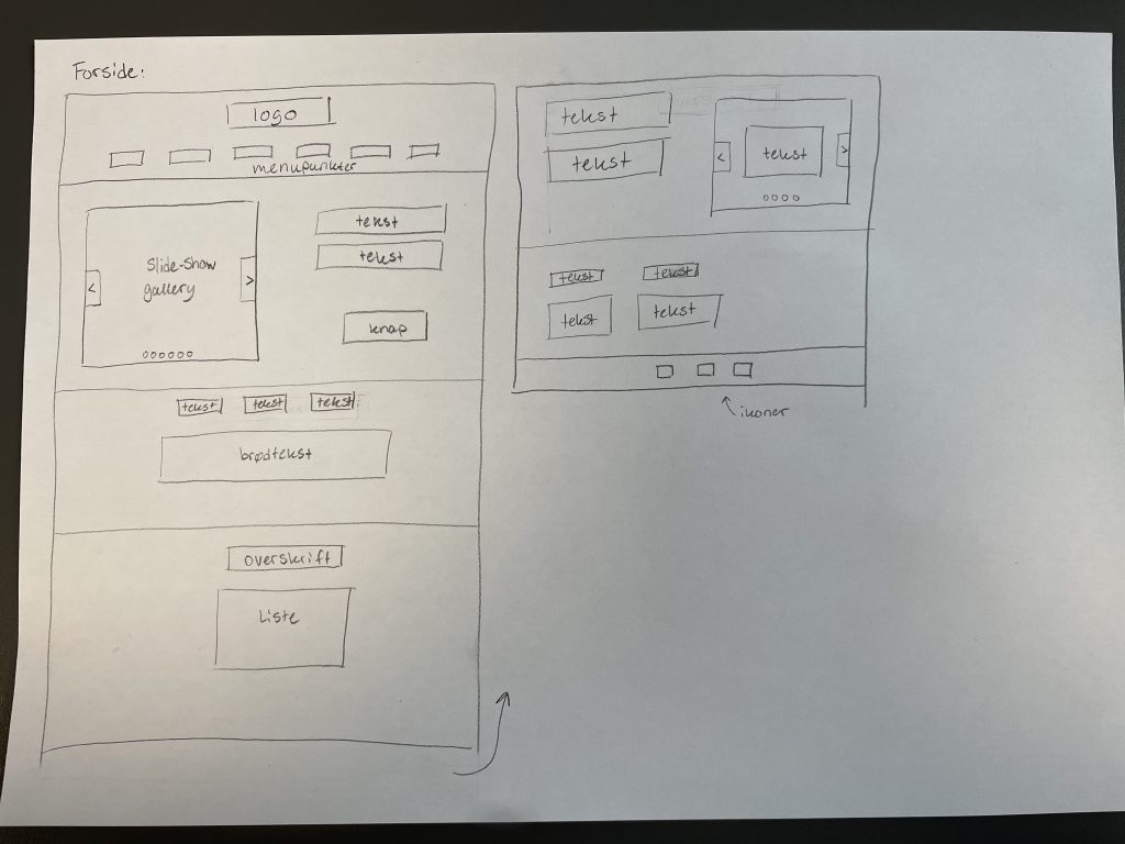 Efter jeg havde kigget lidt rundt og samlet inspiration, lavet jeg en hurtig og meget lo-fi wireframe med papir og blyant.