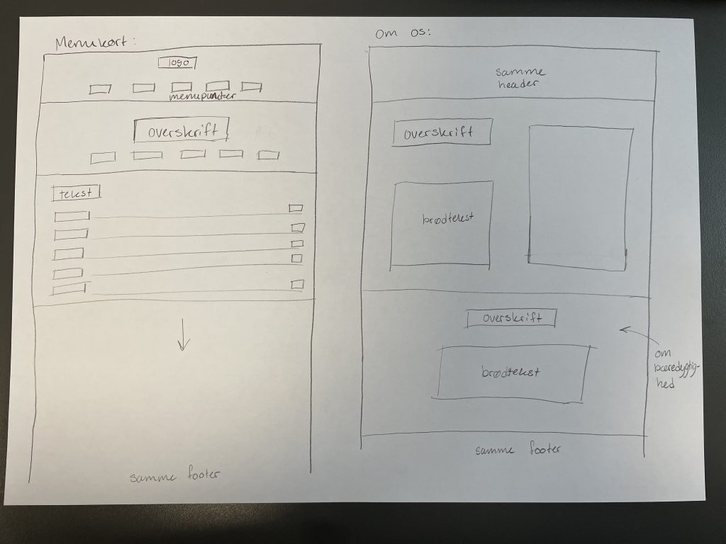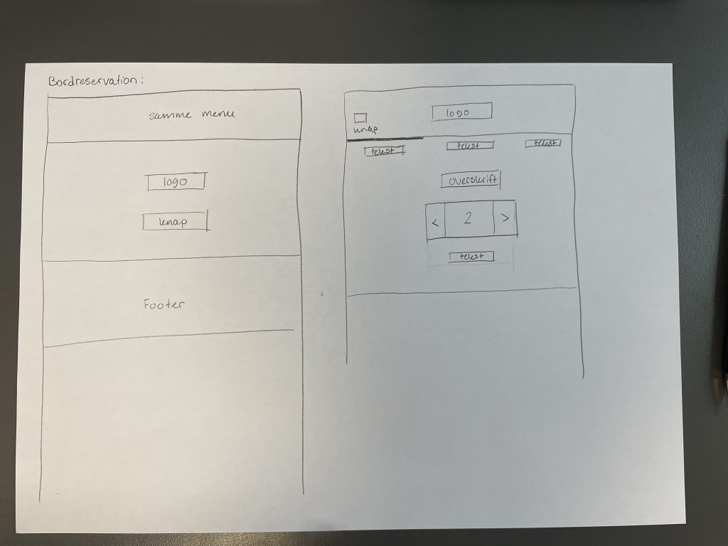 Derefter gik jeg videre til at lave min prototype, som jeg desværre heller ikke fik færdiggjort inden workshoppen var forbi, men jeg nåede næsten at blive færdig med hele forsiden og det meste af menu-kortet: