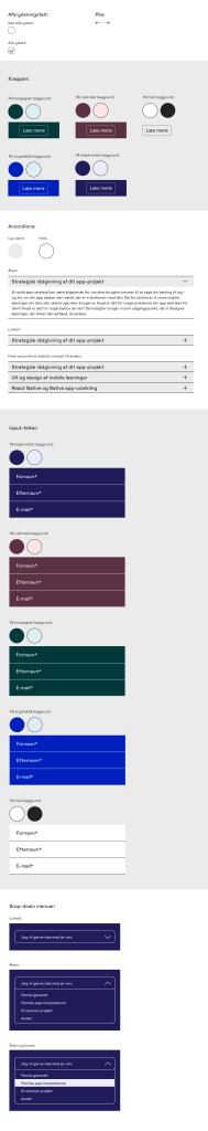 Denne uge blev vi færdige med vores figma prototype, så vi endelig kunne komme i gang med at kode den færdige prototype. Her startede vi med at lave et repository på GitHub, hvorefter vi uddelegerede forskellige sektioner som vi hver ville kode. Desværre endte vi med at blive en smule tidspresset og nåede derfor ikke at gøre hele siden interaktiv, men vi fik implementeret JavaScript kode i 3 forskellige sektioner, så vi hver havde noget kode at forklarer til vores JS-videoer. Derudover fik vi også i denne uge færdiggjort vores designsystem, som vi lavede inde i Figma.