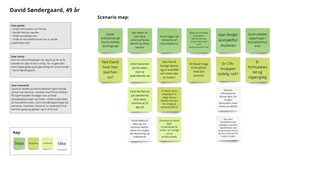 Dernæst brainstormene vi lidt på hvad vi egentlig ville arbejde videre med, hvor vi kom frem til at vi gerne ville arbejde videre med at kode en prototype til en landing page, til Pentia Mobile. Vi synes det kunne være en god opgave, eftersom vi også havde lavet nogle brugerundersøgelser der viste at deres side var svær at finde.