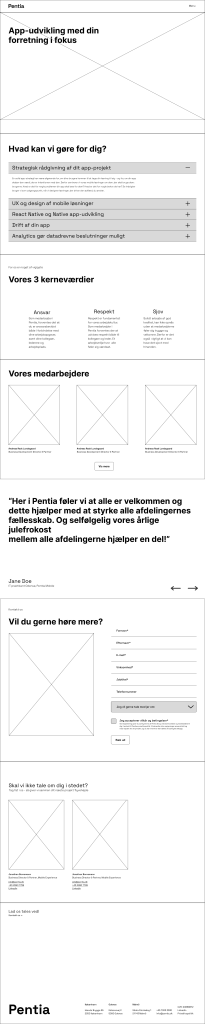Denne uge blev brugt på at opsætte en lo-fi wireframe af vores prototype i Figma og derudover skulle vi også forberede os på vores midtvejs-pitch. I starten af ugen fik vi også lavet en BMC, for at danne os noget forståelse af Pentia som virksomhed, samt en interface inventory, for at skabe et overblik over de forskellige komponenter på Pentias hjemmeside.