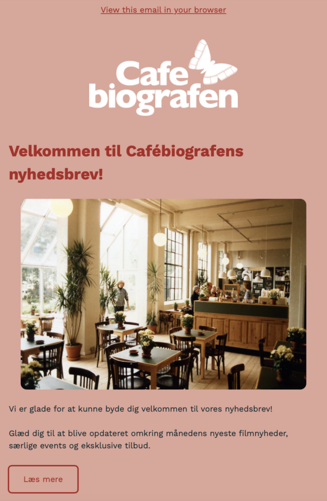 Freya Joy og jeg valgte at vi ville hjælpe hinanden med at lave hver vores opgaver og dermed kunne vi også lave noget som evt. kunne bruges til vores eksamensprojekt. Freya besluttede sig for at kode en applikation i vue, hvor der er et menupunkt i headeren, hvis underpunkter bliver opdateret, ud fra events der bliver lagt ind på Facebook. Jeg valgte også at kode min applikation i vue, da Freya og jeg alligevel har tænkt os bruge vue til at kode vores eksamensprojekt. Jeg gik så i gang med at kode en formular til Cafébiografens nyhedsbrev, hvori du kan skrive navn og mail, hvorefter det bliver gemt i en firestore database. Det var min plan at jeg også ville gøre så man faktisk ville få tilsendt en mail, efter man havde skrevet sit navn og mail ind, men jeg nåede desværre ikke at få det til at virke og det viste jeg også at være noget mere besværligt end jeg havde regnet med.