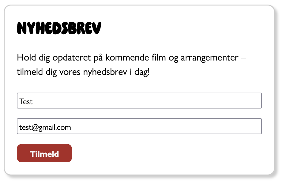 Jeg prøvede derefter at lave forskellige rettelser i min kode, men det intet virkede og jeg nåede desværre ikke at finde en løsning inden jeg skulle fremlægge. Så i stedet endte jeg med at fremlægge om det jeg havde lavet og den originale kode jeg havde på min mailchimp.js, selvom at den ikke virkede længere.
